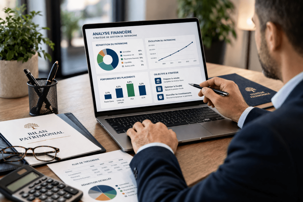 Le bilan patrimonial est une étape essentielle pour faire le point. Il permet d’avoir une photographie précise de votre situation actuelle.